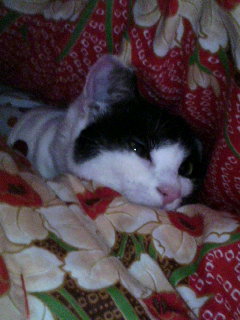 ≫母の実家にたどり着いた直後のにゃんこ。しばらく出てこなかった。
